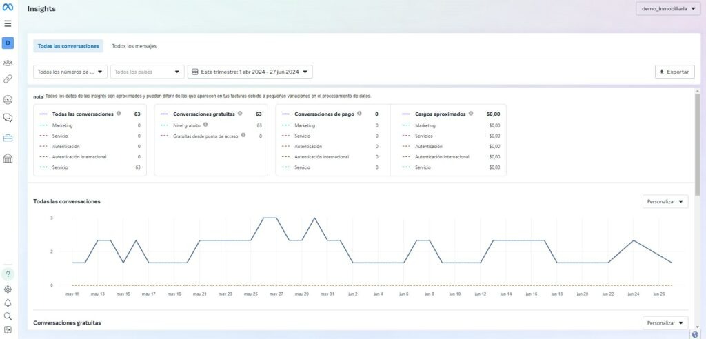 La plataforma WhatsApp Business API de Meta permite la comunicación con los usuarios a través de mensajes. Los costos están basados en una tarifa fija por cada ventana de 24 horas de conversación por usuario, con los primeros 1.000 usuarios mensuales siendo gratuitos.
